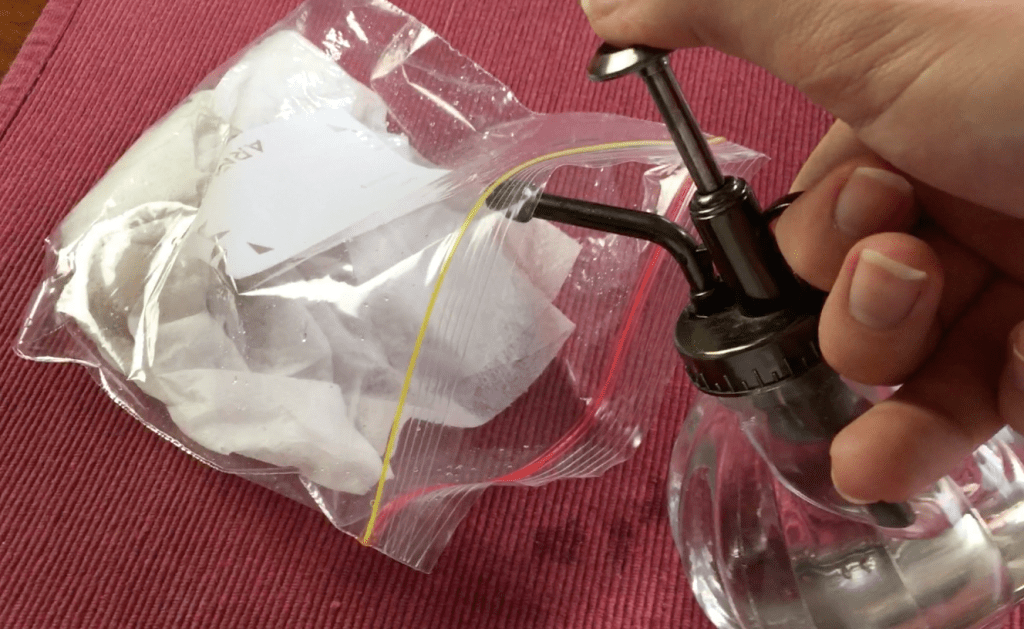 - If you haven’t already moistened the paper towels, give them a liberal spray of water. They should be wet, but not have puddles of water in the bag.